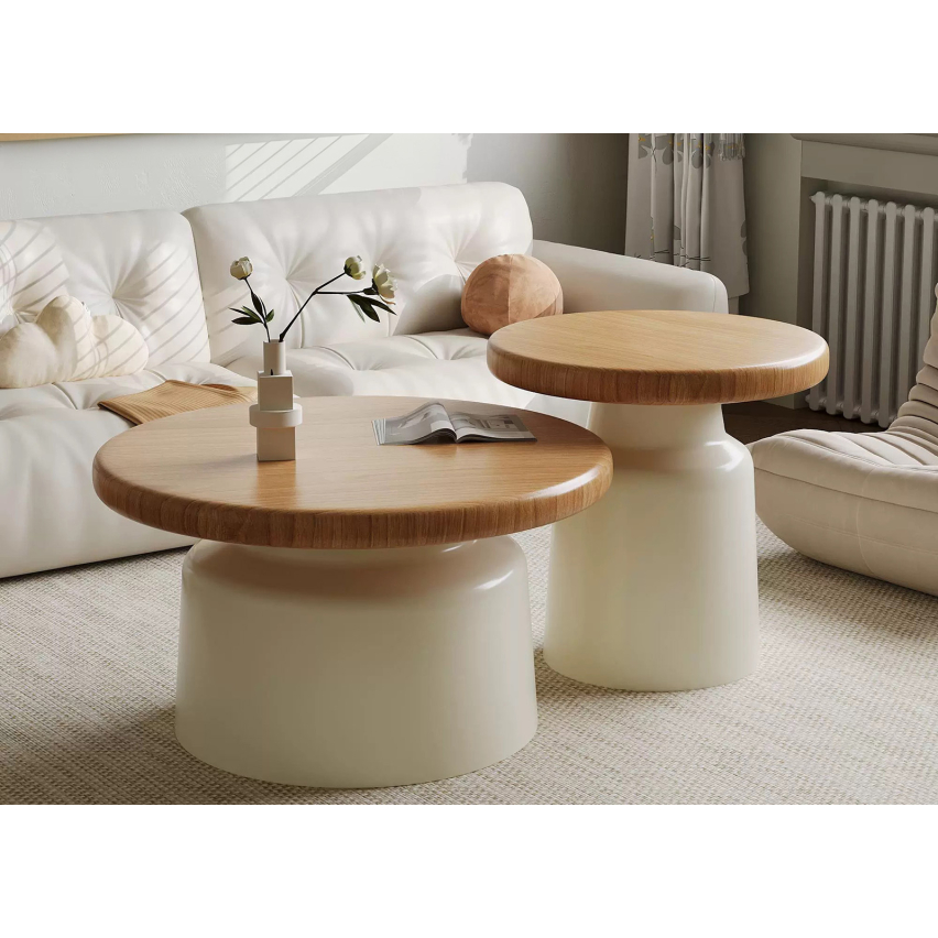 FONTANA on kaheosaline kohvilauakomplekt, mis ühendab sooja puidutooni lauaplaadi ja minimalistliku valge aluse. Ümar vorm ja pehme viimistlus loovad rahuliku, kaasaegse ilme, mis sobib ideaalselt nii väiksemasse kui suuremasse eluruumi.