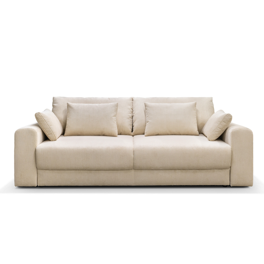 MEGA diivan ühendab klassikalise vormi ja kaasaegse mugavuse. Selle avar istumispind ja pehmed padjad pakuvad mõnusat lõõgastust, samas kui avanev magamisosa muudab diivani hetkega praktiliseks lisavoodiks külalistele. Integreeritud panipaik võimaldab hoiustada voodipesu või pleede, aidates hoida elutoa korras ja harmoonilisena.