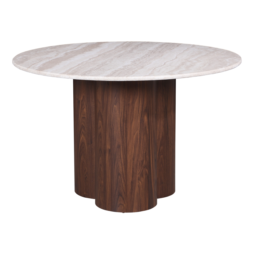 Ümmargune söögilaud MELANY sobib hästi nii väiksemasse söögituppa kui ka avaramasse eluruumi. Selge vorm ja stabiilne jalg loovad rahuliku ja tasakaalus üldmulje.