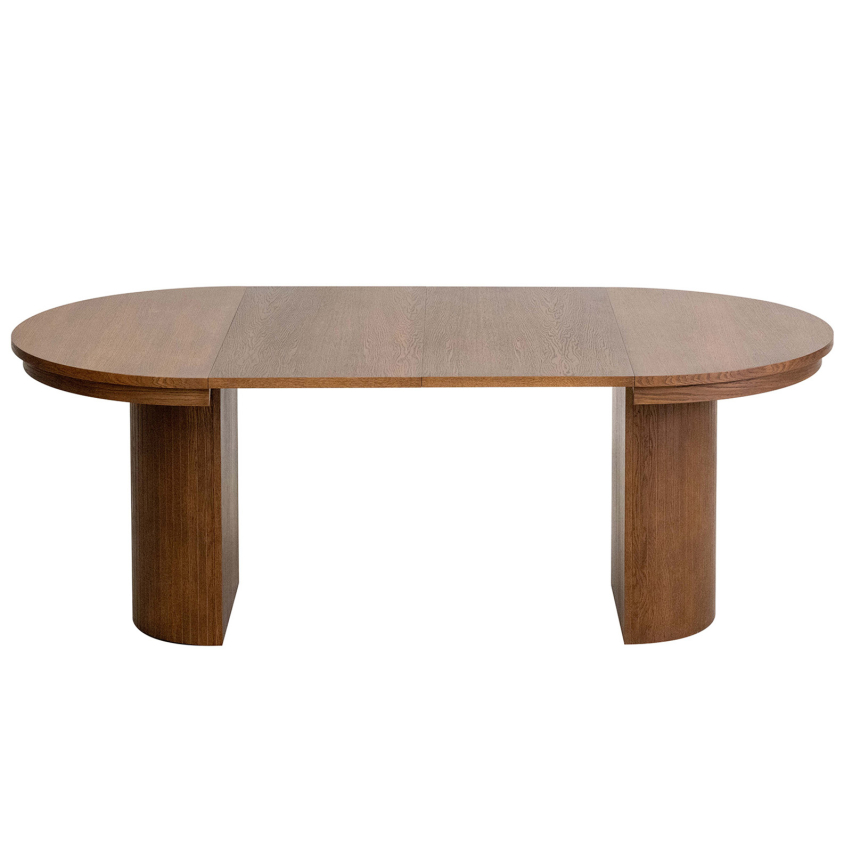 MIKA pikendatav söögilaud ühendab endas ümara vormi elegantsi ja tugeva konstruktsiooni. Selle tumedama tooniga naturaalse tammespooniga kaetud lauaplaadi all peitub nutikas pikendusmehhanism, mis võimaldab lauda olenevalt olukorrast ühe või kahe lisaplaadiga pikendada. Sügava puidu viimistlus toob ruumi soojust ja iseloomu, samas kui silmapaistvad ümarad jalad loovad tasakaalustatud ja pilkupüüdva ilme. Laud sobitub suurepäraselt nii modernse kui ka klassikalise põhjamaise sisekujundusega.