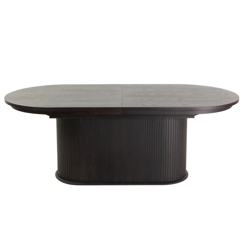 MILAN pikendatav söögilaud ühendab endas peene ovaalse vormi, julge musta viimistluse ja praktilise funktsionaalsuse. Selle elegantne ja jõuline must tammespoon lisab interjöörile modernset iseloomu, samas kui visuaalselt kerge, ent tugev konstruktsioon sobitub suurepäraselt nii minimalistlikku kui ka skandinaavialikku ruumikujundusse. Vertikaalse reljeefiga keskjalg ning diskreetne pikenduslahendus loovad ideaalse kombinatsiooni disainist ja kasutusmugavusest.