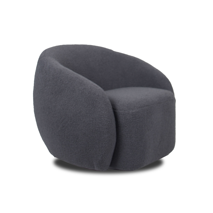 Tugitool FOX on ideaalne koht, kus lõõgastuda ja nautida hetke. Selle pilkupüüdev ümara vormiga disain ja sinakashall teddy-kangas loovad ruumi rahuliku ja modernse meeleolu. Pehme polsterdus ja pöörlev alus muudavad tooli mugavaks nii lugemisnurgas, elutoas kui ka magamistoas.