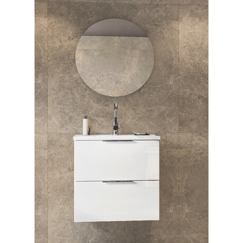 VASIO valamukapp ühendab kaasaegse disaini ja kvaliteetse igapäevakasutuse. Valge korpus ja klaasesipaneelid loovad elegantse ja helge mulje, mida täiendavad kroomitud metallservaga käepidemed. Täielikult väljatõmmatavad sahtlid sulguvad vaikselt ja sujuvalt tänu integreeritud sulgumismehhanismile, tagades mugava ja kestva kasutuskogemuse. Komplekti täiendab klassikaline valge keraamiline valamu.