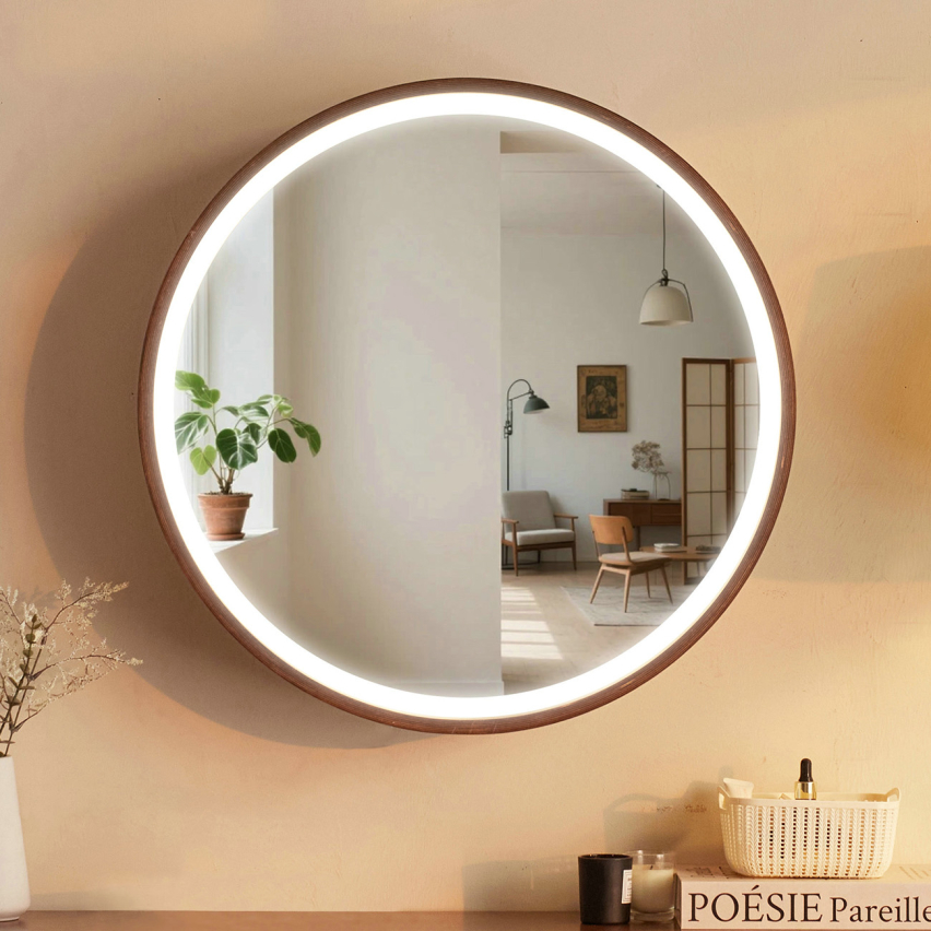 Kaasaegse ja puhta joonega seinapeegel DEKO , mille tagant kumav LED-valgustus loob pehme ning meeldiva üldvalguse. Pruun puitraam lisab soojust ja muudab peegli sobivaks nii esikusse, vannituppa kui ka magamistuppa.