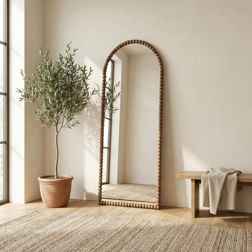 Kaarekujulise ülaosaga peegel MALIKA, mille dekoratiivne puitraam lisab interjöörile soojust ja isikupära. Pruun raam toob ruumi klassikalist ja looduslähedast tunnet ning sobib hästi esikusse, magamistuppa või elutuppa.
