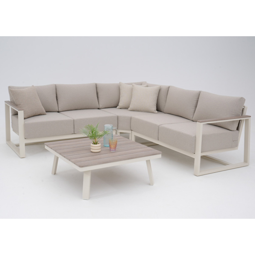 Aiamööblikomplekt ADMIRAL ühendab kaasaegse disaini ja mugava istumislahenduse, luues terrassile või aeda kutsuva puhkeala. Hele toon, minimalistlik metallraam ja naturaalse puidu ilmega detailid annavad komplektile kerge ja elegantse välimuse. Pehmed ja paksud istmepadjad tagavad mugavuse nii hommikukohvi nautimiseks kui ka pikemaks õhtuseks ajaveetmiseks.