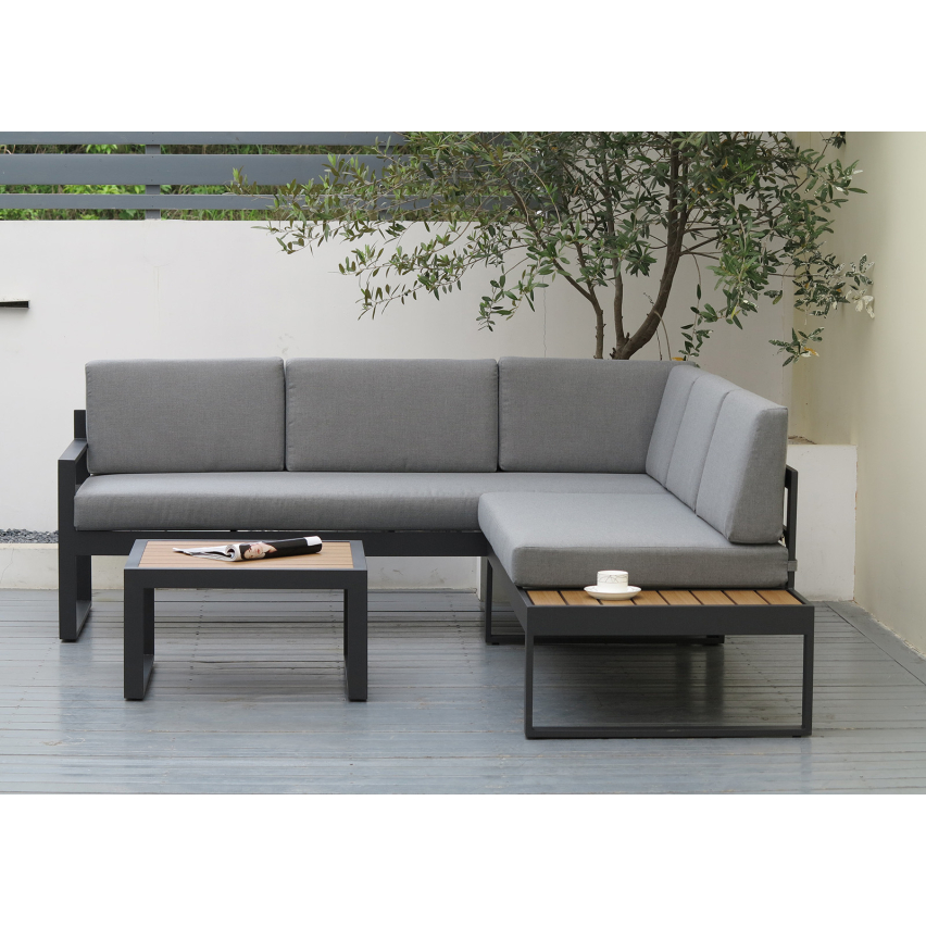 FINCA komplekt ühendab minimalistliku disaini ja praktilised materjalid, luues terrassile puhta ja kaasaegse istumisala. Tumehall raam ja kangas moodustavad ühtse, elegantse terviku, millele lisavad soojust polüwoodist detailid.