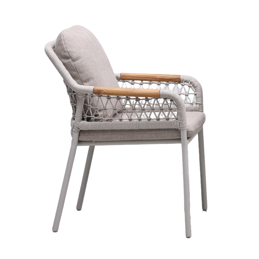 SCOTTY aiatool toob terrassile rahuliku ja elegantse meeleolu. Kreemikas toon, õhuline köisviimistlus ja naturaalsed tiikpuidust käetoed loovad harmoonilise terviku, mida täiendab pehme istumis- ja seljatoepadi.