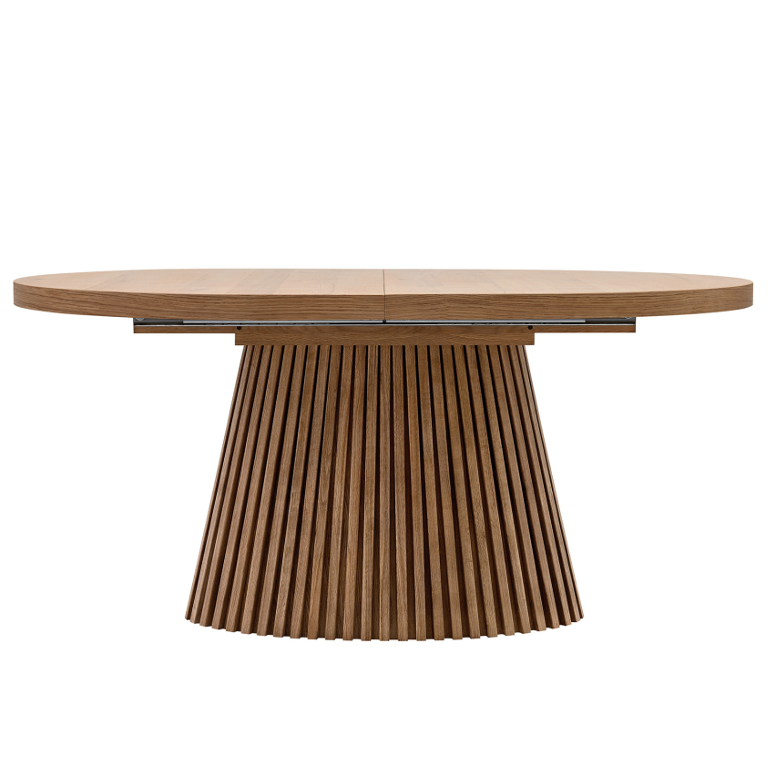 WOOD ovaalne söögilaud toob ruumi loodusliku tamme soojust ja kaasaegset pehmust. Ümarad vormid, tammespoonist liistud ja elegantne ovaalne kuju loovad kutsuva atmosfääri nii pereõhtusöökideks kui pidulikeks sündmusteks. Nutikas pikendusmehhanism on peidetud laua sisse, võimaldades lauda vajadusel mugavalt suurendada.