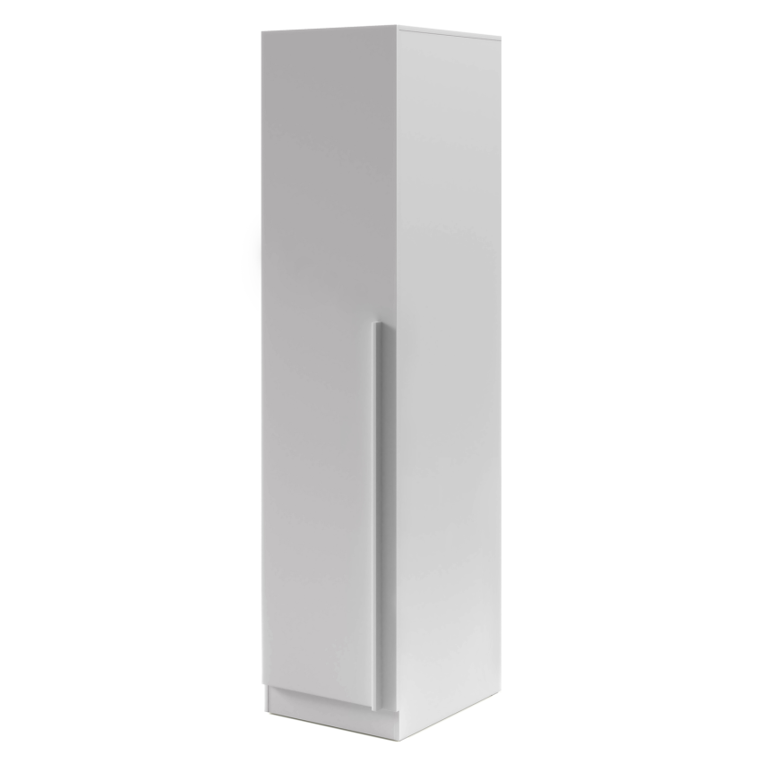 BRAGA ühe uksega riidekapp hallis toonis on kitsas ja praktiline hoiulahendus, mis sobib ideaalselt väiksemasse ruumi või suurema BRAGA kapilahenduse täienduseks. Neutraalne värvitoon võimaldab kappi hõlpsalt sobitada erinevate sisustusstiilidega.