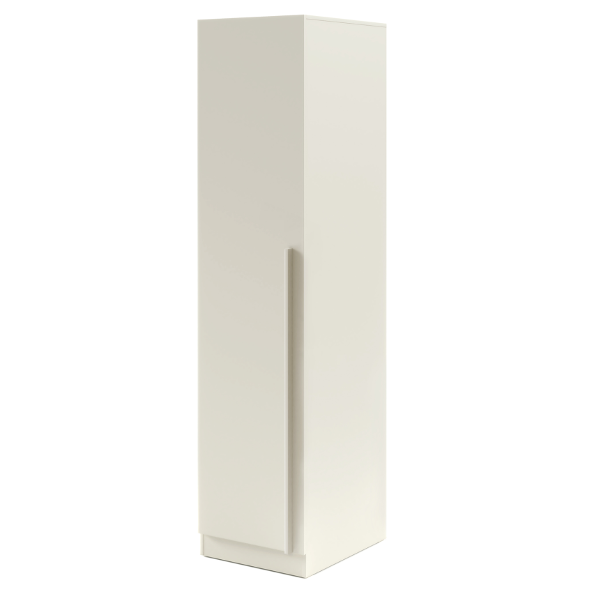 BRAGA ühe uksega riidekapp kašmiiri toonis lisab ruumi helgust ja visuaalset kergust. Kitsas vorm muudab selle heaks valikuks ka piiratud põrandapinnaga ruumidesse või modulaarse kapilahenduse osaks.