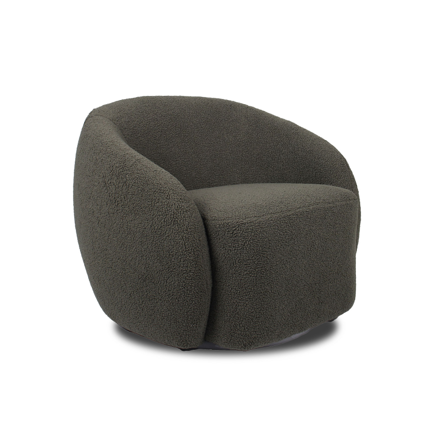 Tugitool FOX on ideaalne koht, kus lõõgastuda ja nautida hetke. Selle pilkupüüdev ümara vormiga disain ja sügavroheline teddy-kangas loovad ruumi hubasuse ja modernse ilme. Pehme polsterdus ja pöörlev alus muudavad tooli mugavaks nii lugemisnurgas, elutoas kui ka magamistoas.