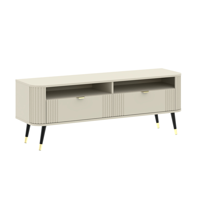 Modernse ja minimalistliku joonega TV-alus ONYX kollektsioonist toob elutuppa rahuliku ja elegantse ilme. Ümarad servad, peened vertikaalsed liistud ja kuldsed detailid loovad luksusliku, kuid samas pehme üldmulje.