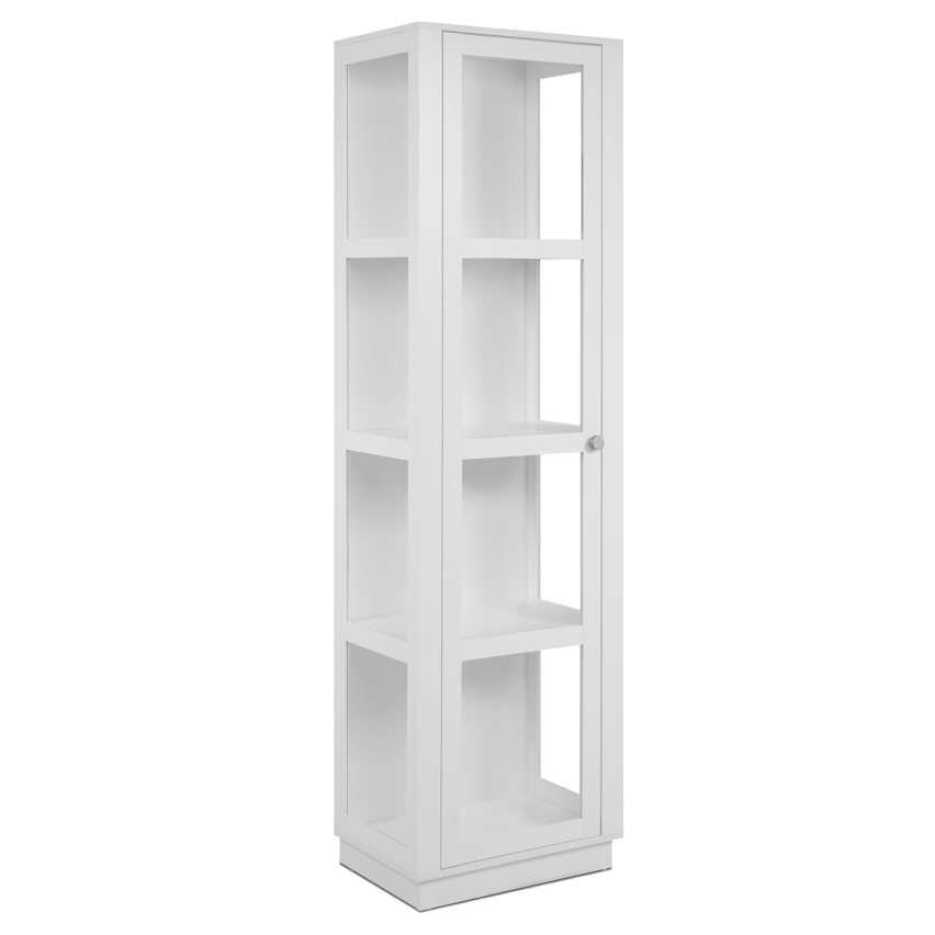Vitriinkapp ARLES on saleda vormiga hoiulahendus, mis sobib hästi nii elutuppa kui ka söögituppa. Valge viimistlus ja klaasuks loovad kerge ning ajatu üldmulje, samas kui riiulid võimaldavad esemeid korrastatult ja nähtavalt eksponeerida.